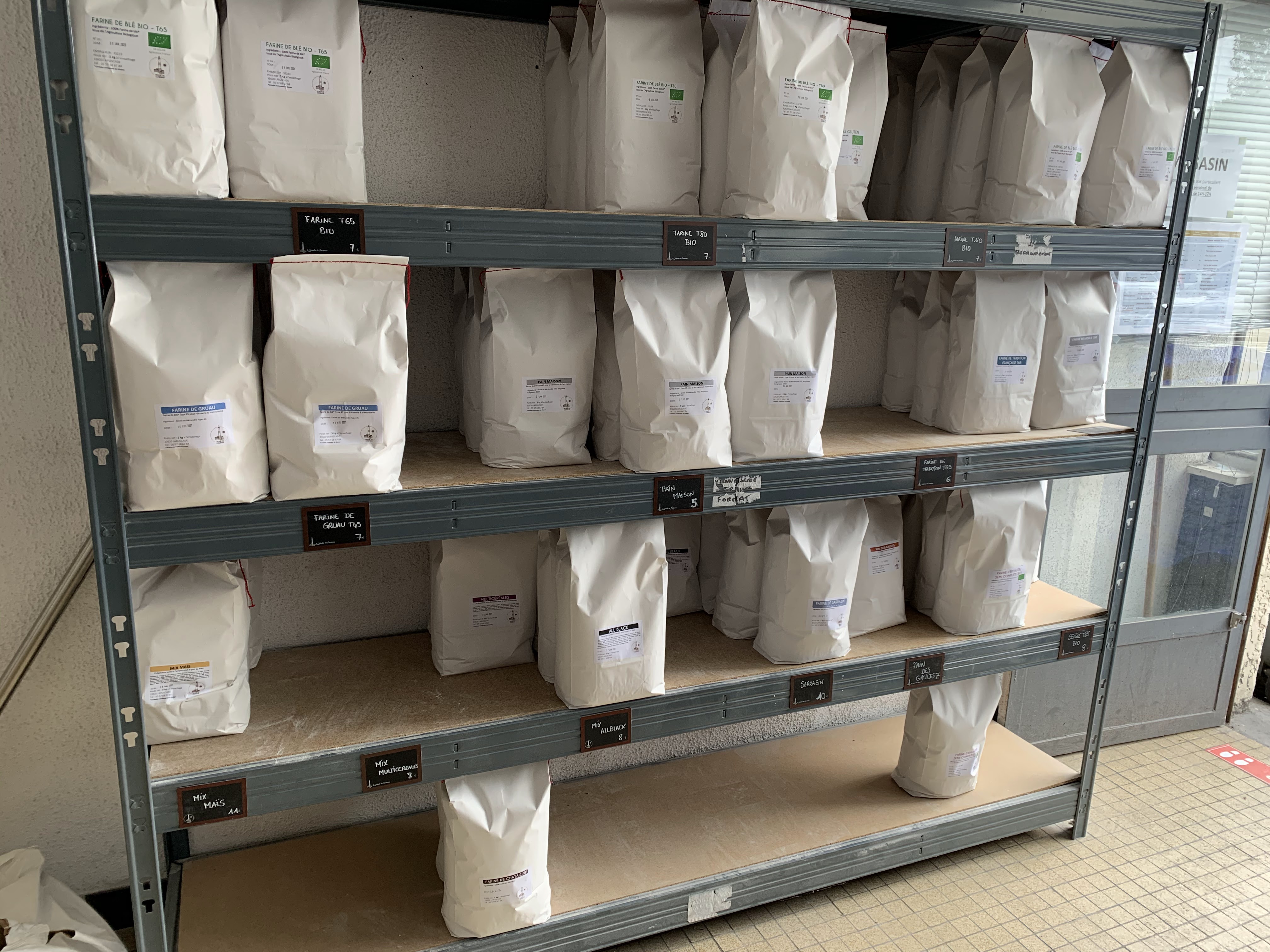 Accueil sympathique, beaucoup de choix de farines pour les particuliers, j'ai acheté de la farine multigrains et de la farine de blé normale. la farine multigrains est un mélange tout prêt et avec ma machine à pain, c'était l'idéal, le sel était déjà dans la préparation. Je recommande vivement.